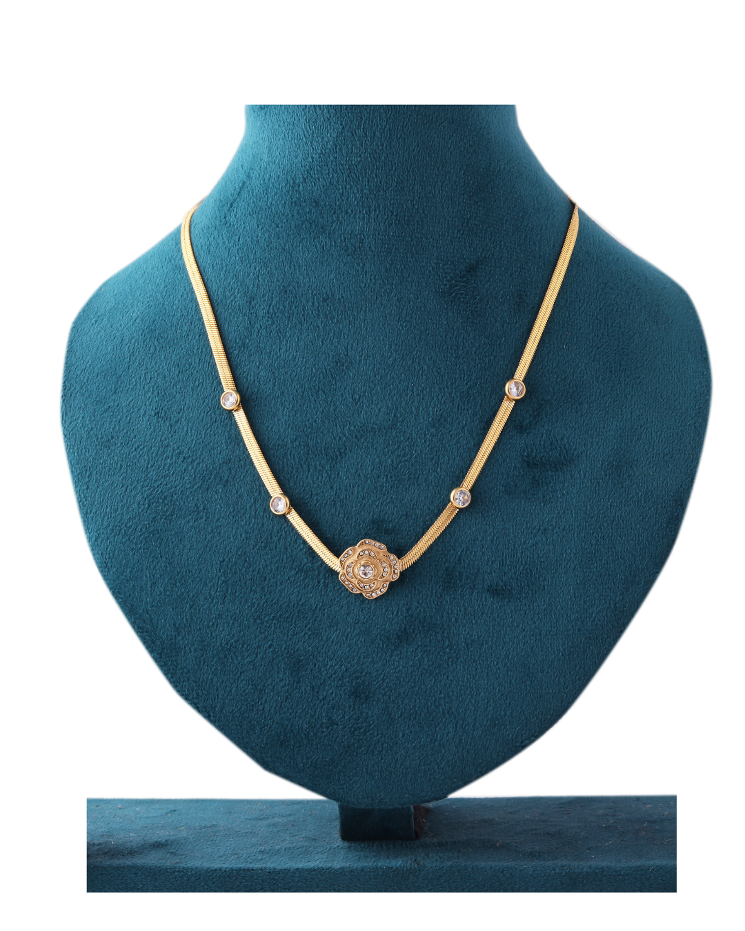 Designed with intricate floral motifs and light-catching details, this set adds a graceful glow to your neckline and ears. The finely crafted chain and matching earrings bring just the right amount of sparkle, perfect for both day and evening wear.