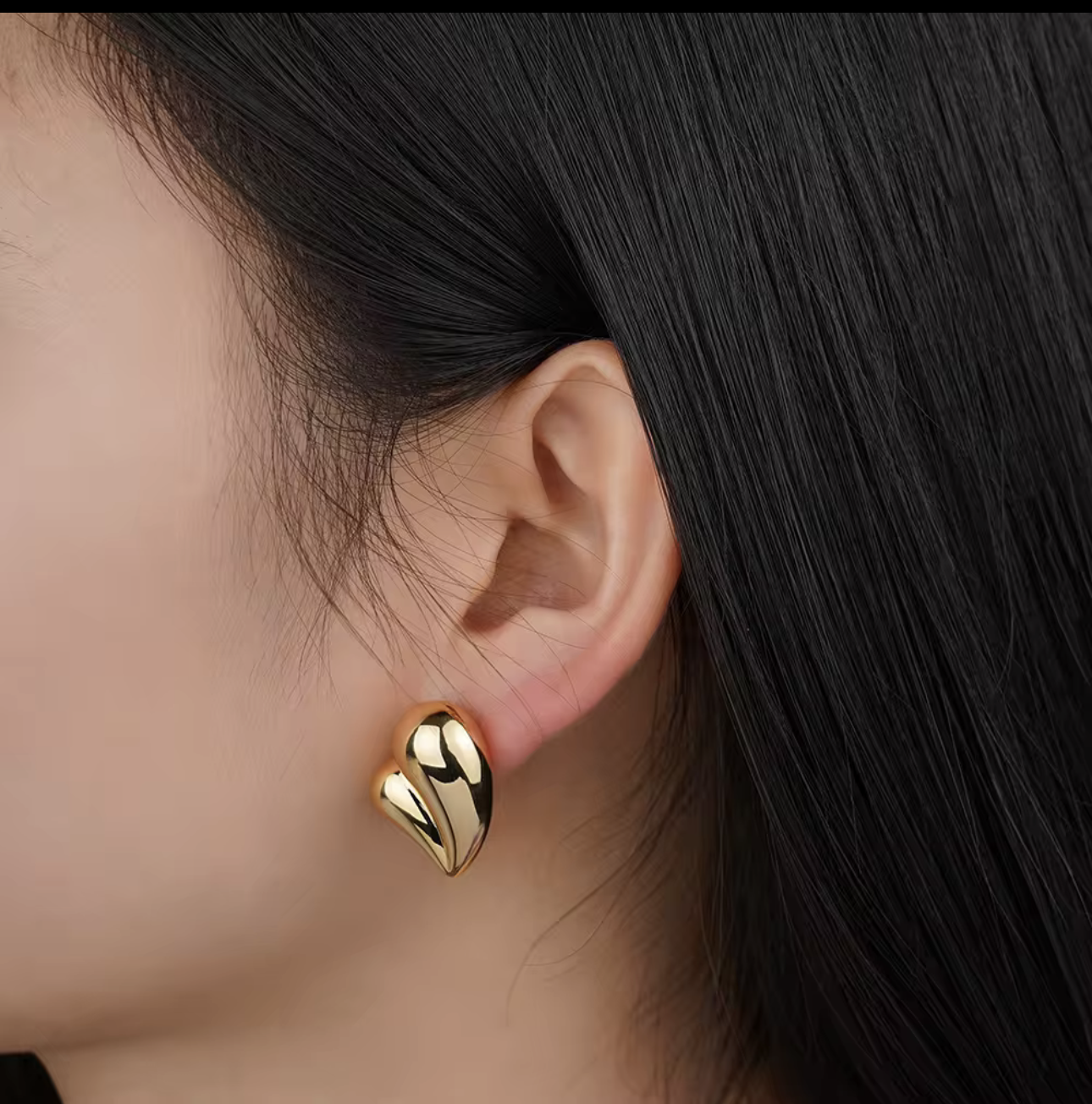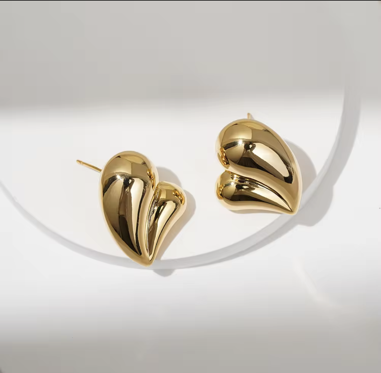Crafted with a fluid, melting-heart design, the Heart Drip earrings embody bold expression and raw emotion. Their sleek metallic finish and contemporary silhouette make them a statement piece for the modern romantic.