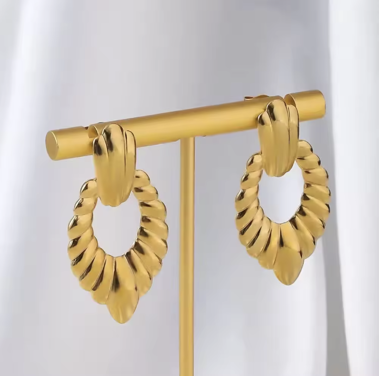 The Twist Vibe earrings feature a sleek spiral design that dances between minimalism and edge. Light-catching curves create effortless movement, making them your go-to piece for day-to-night glam. Elegant yet playful — just like your vibe.